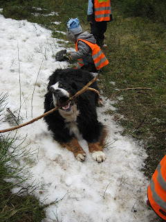 Hundene venter på sin mat, på hverandaen. Det ble faktisk laks på dem og, heldige hunder:))